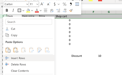 - Right click row