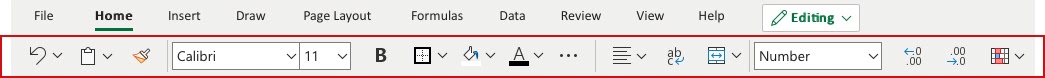 Read more about the Ribbon in the Excel overview chapter.